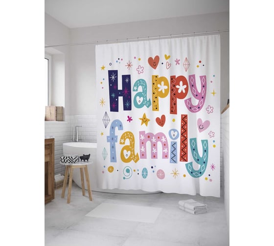 Штора (занавеска) для ванной JoyArty "Счастливая семья" из сатена, 180х200 см с крючками, sc_34558