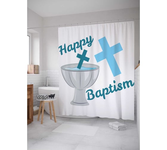 Штора (занавеска) для ванной JoyArty "Счастливое Крещение" из сатена, 180х200 см с крючками, sc_9589