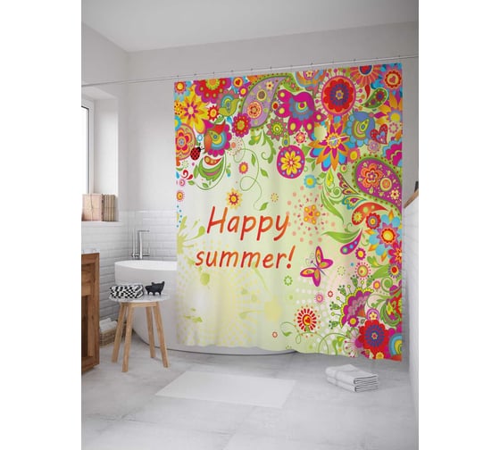 Штора (занавеска) для ванной JoyArty "Счастливое лето в цветах" из сатена, 180х200 см с крючками, sc_29166