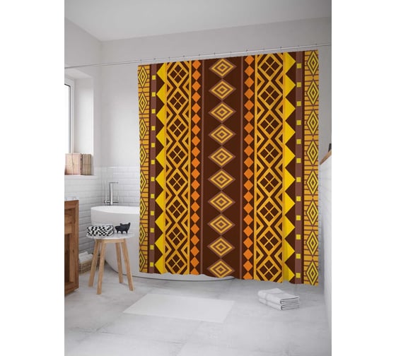 Штора (занавеска) для ванной JoyArty "Счастливые полосы" из сатена, 180х200 см с крючками, sc_16824