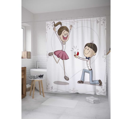 Штора (занавеска) для ванной JoyArty "Счастливый момент" из сатена, 180х200 см с крючками, sc_34544