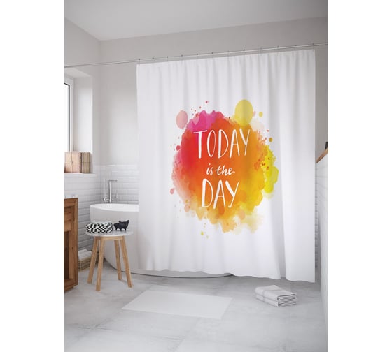 Штора (занавеска) для ванной JoyArty "Сегодняшний день" из сатена, 180х200 см с крючками, sc_53230