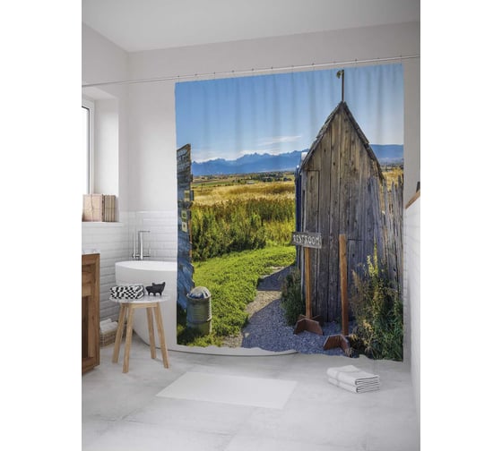 Штора (занавеска) для ванной JoyArty "Сельский туалет" из сатена, 180х200 см с крючками, sc_35215