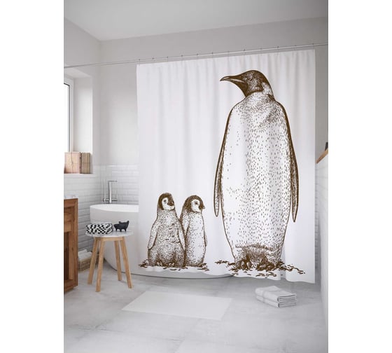 Сопутствующие товары для шторки-занавески JOYARTY Семейство пингвинов из сатена, 180х200 см с крючками