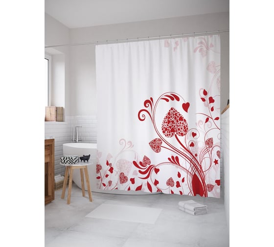 Штора (занавеска) для ванной JoyArty "Сердечные узоры" из сатена, 180х200 см с крючками, sc_52796