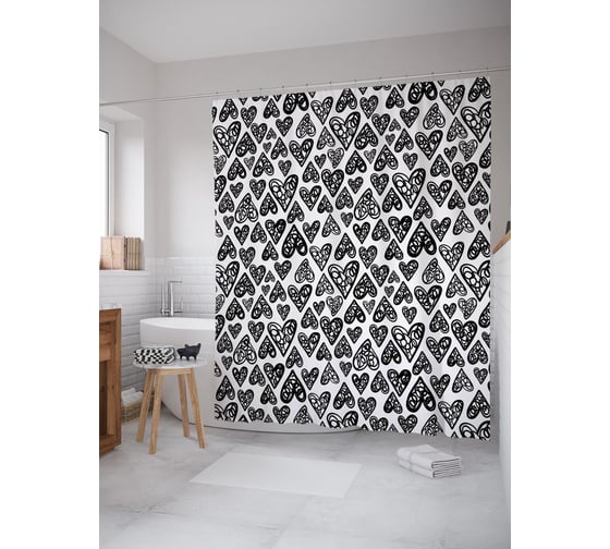 Сопутствующие товары для шторки-занавески JOYARTY Сердца в каракулях из сатена, 180х200 см с крючками
