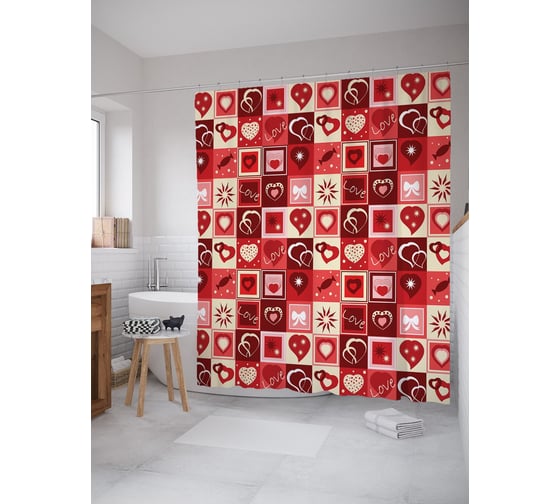 Сопутствующие товары для шторки-занавески JOYARTY Сердца в квадрате из сатена, 180х200 см с крючками