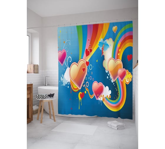 Сопутствующие товары для шторки-занавески JOYARTY Сердце и радуга из сатена, 180х200 см с крючками