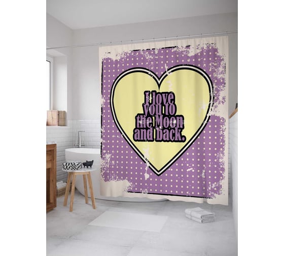 Штора (занавеска) для ванной JoyArty "Серце с точками" из сатена, 180х200 см с крючками, sc_46217