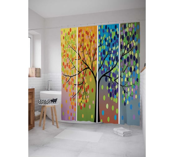 Штора (занавеска) для ванной JoyArty "Сезонные краски" из сатена, 180х200 см с крючками, sc_7114