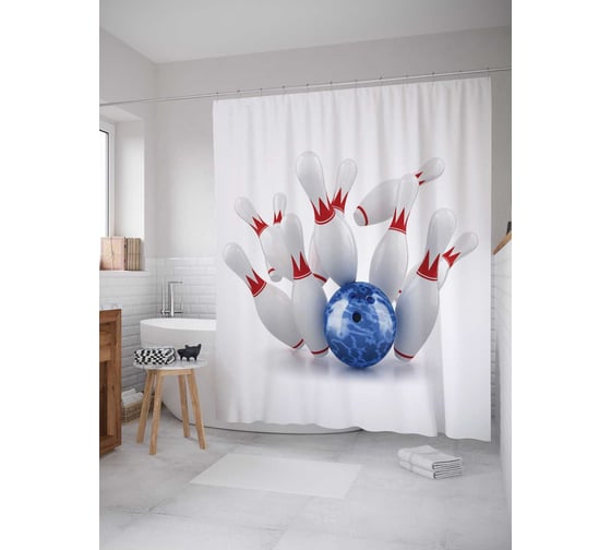 Штора (занавеска) для ванной JoyArty "Шар и кегли" из сатена, 180х200 см с крючками, sc_4638