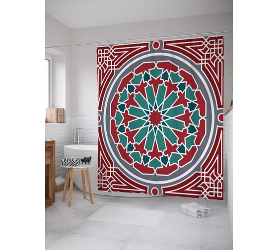 Штора (занавеска) для ванной JoyArty "Шедевральные узоры" из сатена, 180х200 см с крючками, sc_15393