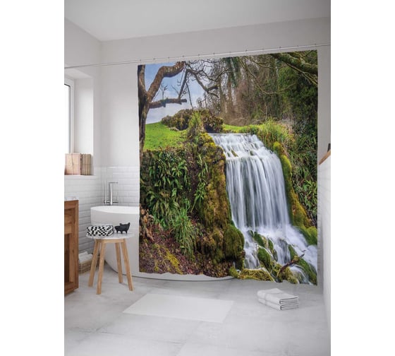 Штора (занавеска) для ванной JoyArty "Шёпот водопада" из сатена, 180х200 см с крючками, sc_6388
