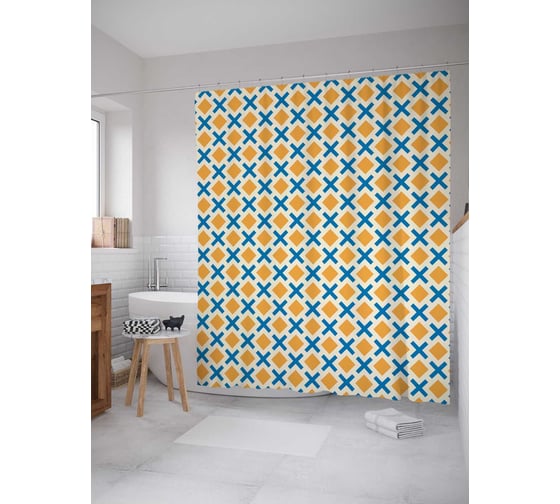 Штора (занавеска) для ванной JoyArty "Швы ромбами" из сатена, 180х200 см с крючками, sc_28659