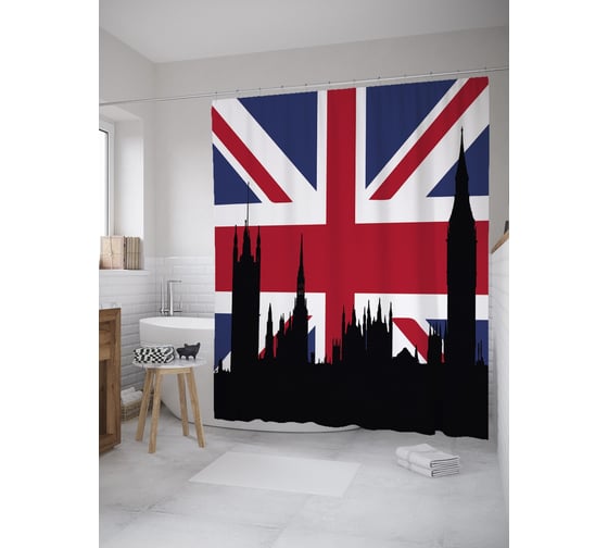 Штора (занавеска) для ванной JoyArty "Силуэты Англии" из сатена, 180х200 см с крючками, sc_39126