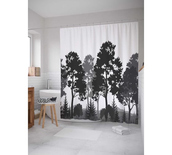 Сопутствующие товары для шторки-занавески JOYARTY Силуэты леса из сатена, 180х200 см с крючками