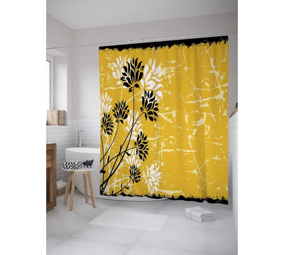 Штора (занавеска) для ванной JoyArty "Силуэты соцветий" из сатена, 180х200 см с крючками, sc_27748