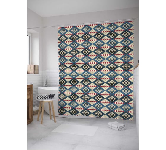 Штора (занавеска) для ванной JoyArty "Симметричный орнамент" из сатена, 180х200 см с крючками, sc_10201