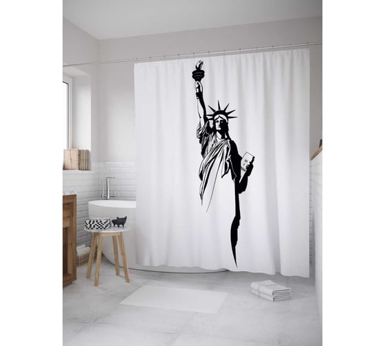 Штора (занавеска) для ванной JoyArty "Символ свободы" из сатена, 180х200 см с крючками, sc_31648