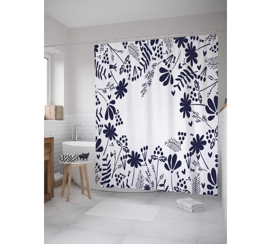 Сопутствующие товары для шторки-занавески JOYARTY Синие цветочки из сатена, 180х200 см с крючками