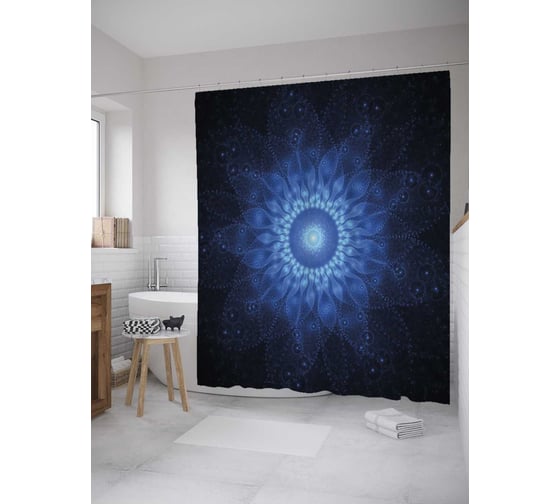 Штора (занавеска) для ванной JoyArty "Сияние мандалы" из сатена, 180х200 см с крючками, sc_35333