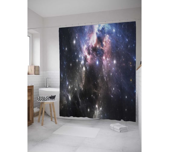 Штора (занавеска) для ванной JoyArty "Сияние туманности" из сатена, 180х200 см с крючками, sc_35288