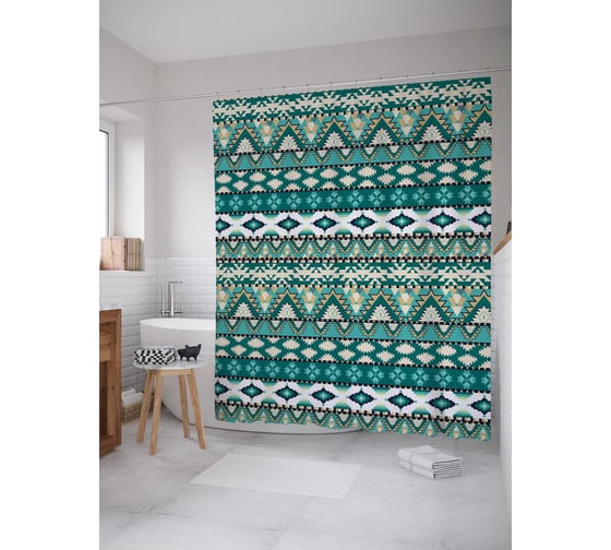 Штора (занавеска) для ванной JoyArty "Скандинавский узор" из сатена, 180х200 см с крючками, sc_47099