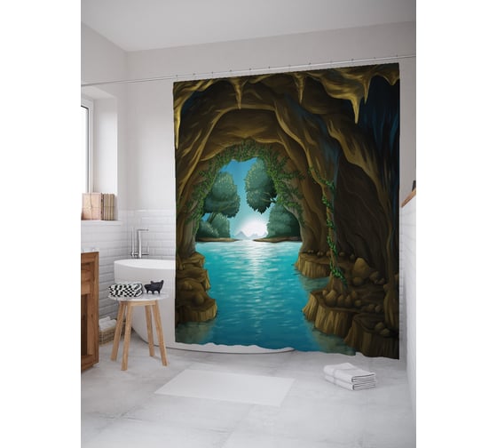 Штора (занавеска) для ванной JoyArty "Сказочная пещера" из сатена, 180х200 см с крючками, sc_53570