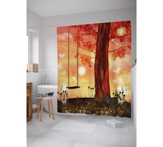 Штора (занавеска) для ванной JoyArty "Сказочные качели" из сатена, 180х200 см с крючками, sc_2932
