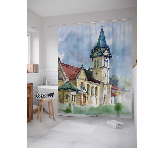 Штора (занавеска) для ванной JoyArty "Сказочный замок" из сатена, 180х200 см с крючками, sc_31461