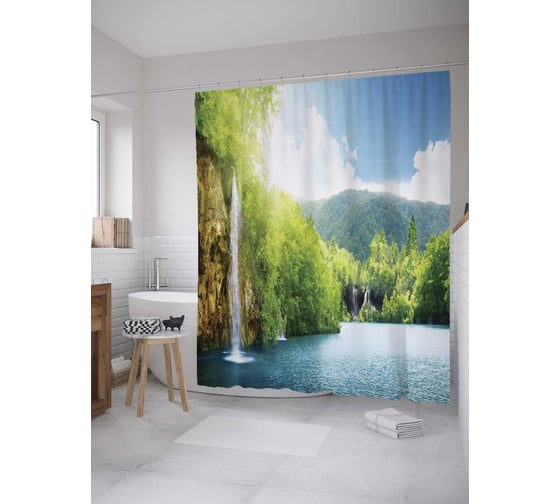 Штора (занавеска) для ванной JoyArty "Скопление водопадов" из сатена, 180х200 см с крючками, sc_8297