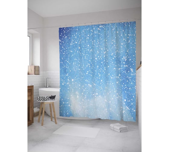 Штора (занавеска) для ванной JoyArty "Скопление зодиака" из сатена, 180х200 см с крючками, sc_35291