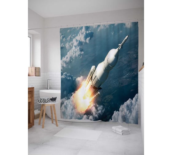 Штора (занавеска) для ванной JoyArty "Скоро космос" из сатена, 180х200 см с крючками, sc_9889