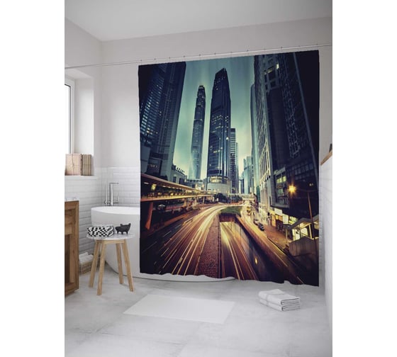 Штора (занавеска) для ванной JoyArty "Скорость мегаполиса" из сатена, 180х200 см с крючками, sc_8954