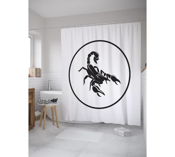 Штора (занавеска) для ванной JoyArty "Скорпион в кругу" из сатена, 180х200 см с крючками, sc_60296