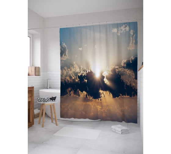 Штора (занавеска) для ванной JoyArty "Скрытое солнце" из сатена, 180х200 см с крючками, sc_13003