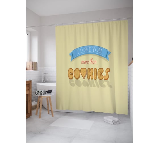 Штора (занавеска) для ванной JoyArty "Сладкая любовь" из сатена, 180х200 см с крючками, sc_53724