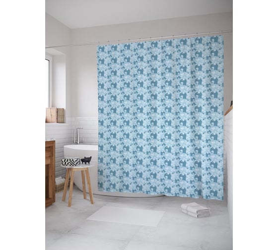 Штора (занавеска) для ванной JoyArty "Слоненок среди сердец" из сатена, 180х200 см с крючками, sc_54537