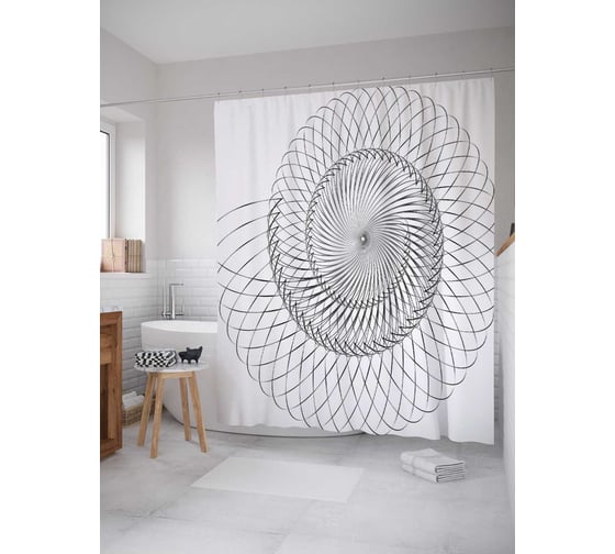 Штора (занавеска) для ванной JoyArty "Сложная спираль" из сатена, 180х200 см с крючками, sc_18738