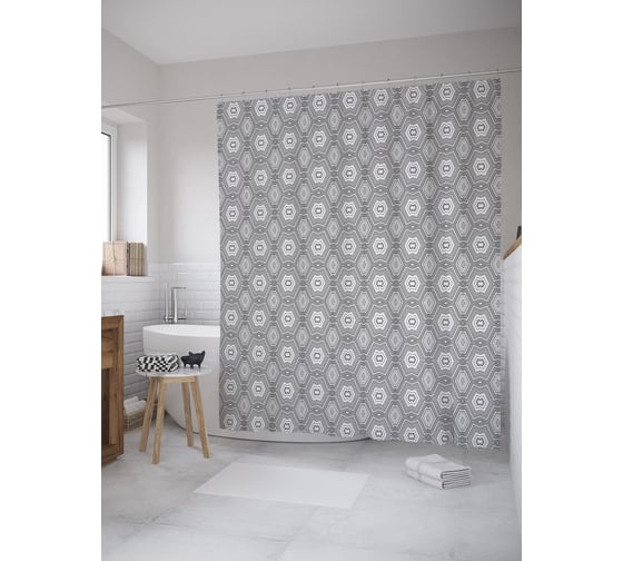 Штора (занавеска) для ванной JoyArty "Сложный геометрический орнамент" из сатена, 180х200 см с крючками, sc_61616