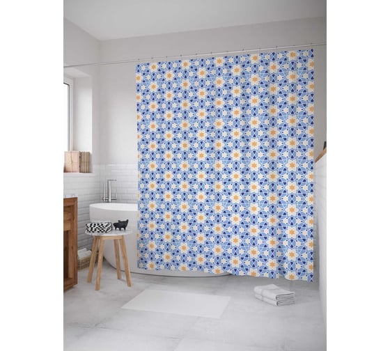 Штора (занавеска) для ванной JoyArty "Сложный витраж" из сатена, 180х200 см с крючками, sc_28732