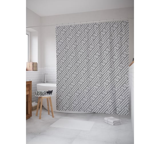 Штора (занавеска) для ванной JoyArty "Случайное сплетение полос" из сатена, 180х200 см с крючками, sc_58262