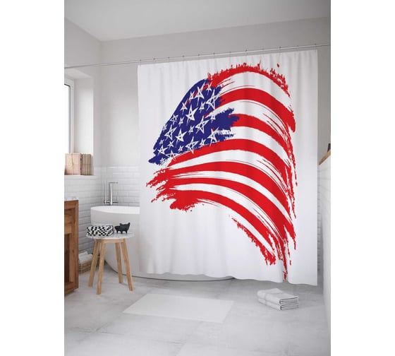 Штора (занавеска) для ванной JoyArty "Смазанный флаг" из сатена, 180х200 см с крючками, sc_20704