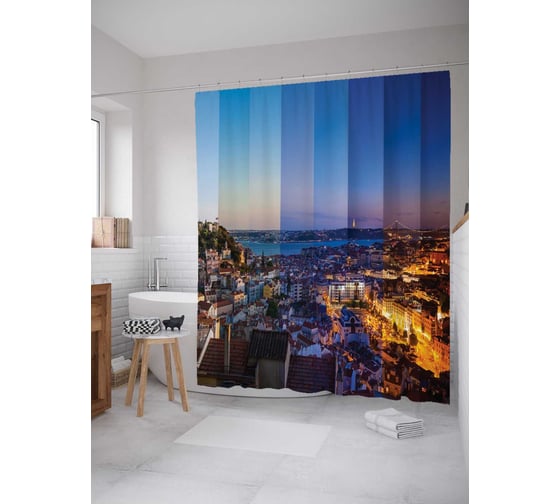 Штора (занавеска) для ванной JoyArty "Смена дня и ночи" из сатена, 180х200 см с крючками, sc_20844