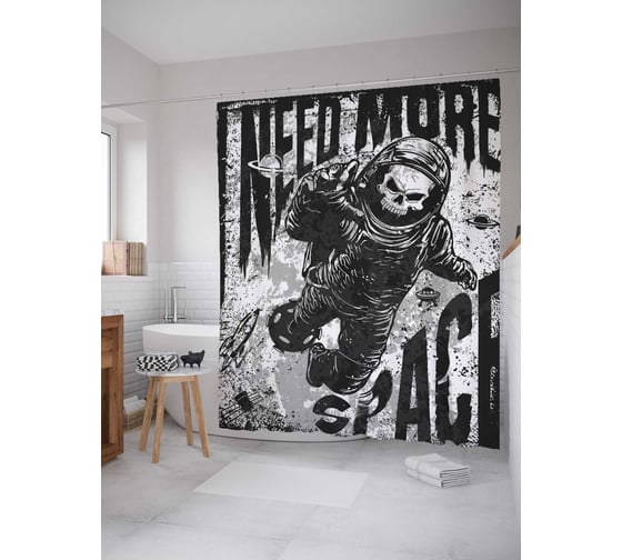Штора (занавеска) для ванной JoyArty "Смертельный космос" из сатена, 180х200 см с крючками, sc_19929