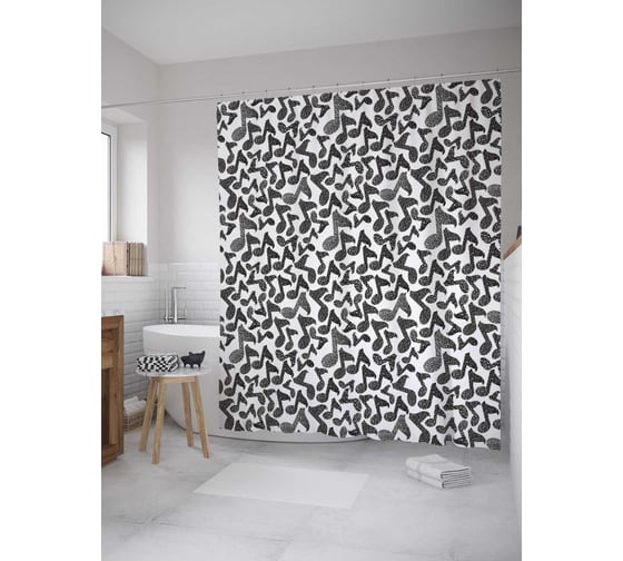 Штора (занавеска) для ванной JoyArty "Смешанные ноты" из сатена, 180х200 см с крючками, sc_33010