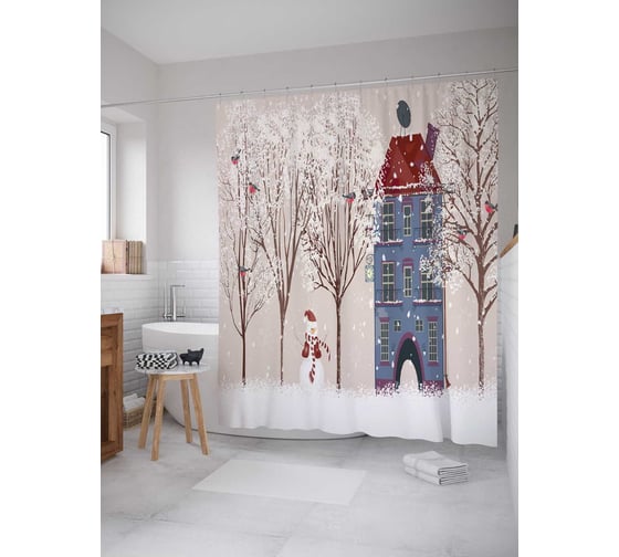 Сопутствующие товары для шторки-занавески JOYARTY Снеговик во дворе из сатена, 180х200 см с крючками