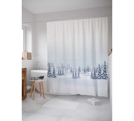 Штора (занавеска) для ванной JoyArty "Снежные ели" из сатена, 180х200 см с крючками, sc_18890