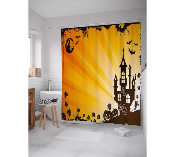Штора (занавеска) для ванной JoyArty "Снова Хэллоуин" из сатена, 180х200 см с крючками, sc_18794