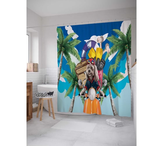 Штора (занавеска) для ванной JoyArty "Собачье приключение" из сатена, 180х200 см с крючками, sc_54667